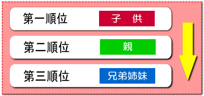 A被相続人の子供(子供が先に亡くなっているときは 孫)親(親が先に亡くなっているときは 祖父母)兄弟姉妹(兄弟姉妹が先に亡くなっているときは おい・めい)